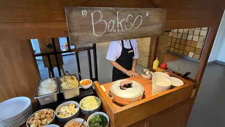 - 朝食のBAKSOコーナー。作りたてのスープが人気。
