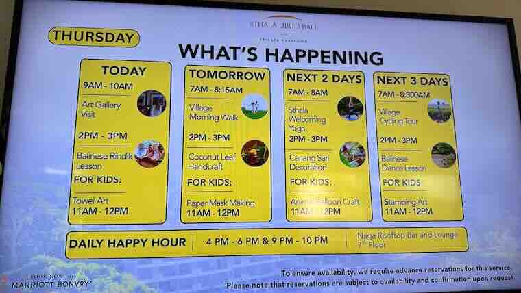 - スタラのアクティビティメニュー。ロビーのモニターで毎日更新。