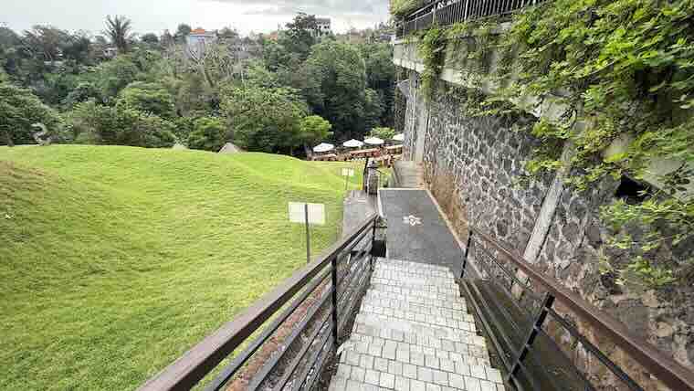 - ホテル外階段からアユン川へ続く散歩道。静かな自然が広がる。